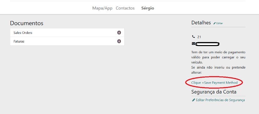 Na página da sua conta clique "+Save Payment Method" para inserir ou alterar o método de pagamento